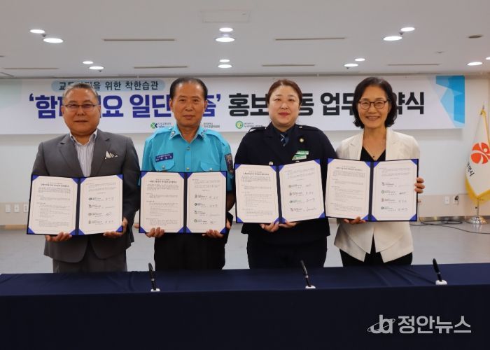 정안뉴스 박상욱 기자 | 광주광역시자치경찰위원회는 TBN광주교통방송, 광주녹색어머니연합회, 광주모범운전자연합회와 함께 24일 오후 시청 중회의실에서 교통안전을 위한 착한 습관 ‘함께해요 일단멈춤’ 업무협약을 체결했다.