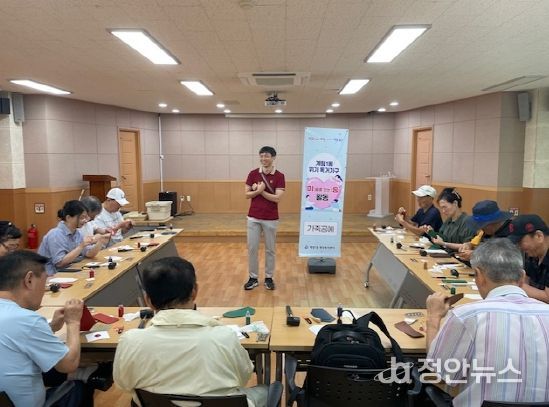 계림1동 착한가게 후원으로 마련된 이번 체험은 1인 가구가 외부 활동을 하면서 다른 참여자와 만남의 기회를 갖고, 가죽을 다루는 작업을 하면서 집중력 향상과 정서 회복하는 데 도움을 주기 위해 기획됐다.