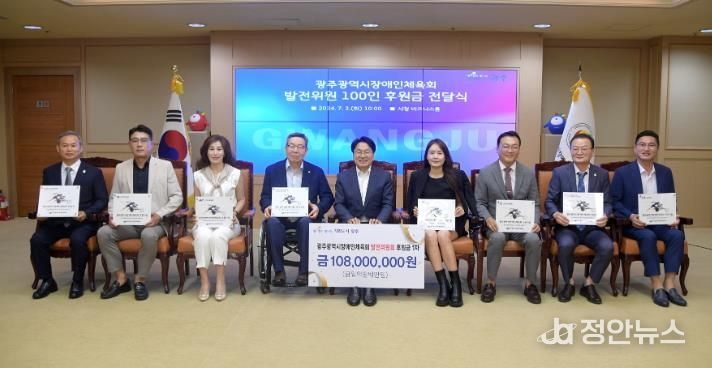 광주시장애인체육회 발전위원회는 지역 기업과 후원인 100명이 광주장애인체육의 경쟁력 강화와 최근 빠르게 성장하고 있는 광주시장애인체육회의 발전을 지원하기 위해 지난해 12월 결성했다.