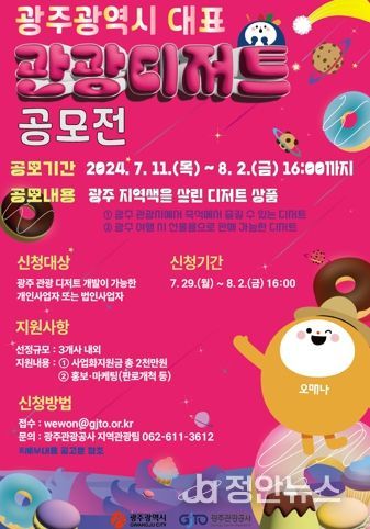 광주광역시는 광주관광공사와 함께 맛의 도시 광주를 대표하는 길거리 음식, 음료, 선물용 간식 등 개발을 위한 ‘광주 대표 관광디저트 개발 사업자’를 오는 8월 2일까지 공모한다.