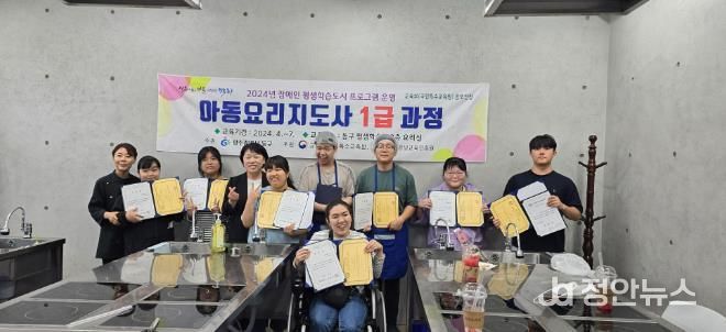 자격증을 취득한 이들은 동구평생학습관에서 운영 중인 아동요리지도사 1급 과정에 참여 중인 10명의 청각·시각·뇌병변 등 장애인 대학생 중 9명이다.