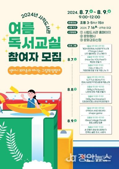송경희 시립도서관장은 “여름 독서교실을 통해 어린이들이 자기주도적 독서습관 형성과 도서관을 친숙한 놀이공간으로 여기고 독서활동의 즐거움을 알아가길 바란다”고 말했다.
