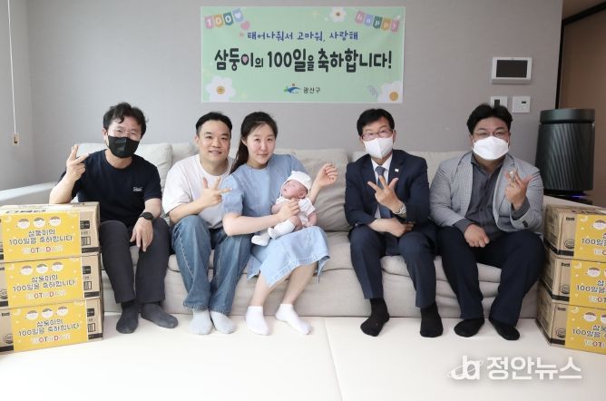 정안뉴스 박상욱 기자 | 광주 광산구는 19일 세쌍둥이 가정을 찾아 100일을 축하했다고 밝혔다.
