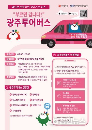 광주광역시는 오는 23일 ‘“부르면 갑니다” 광주투어버스’ 앱을 출시하고 수요응답형(DRT) 광주투어버스를 함께 운영한다.