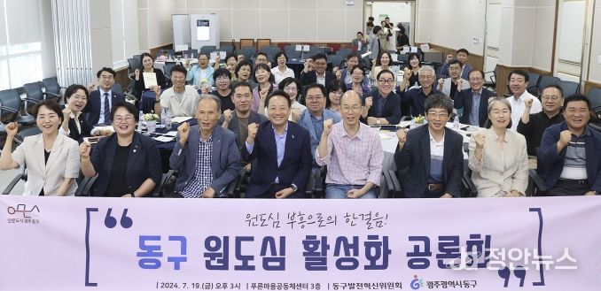 정안뉴스 박상욱 기자 | 광주 동구는 최근 산수동 푸른마을공동체센터에서 원도심 부흥을 위한 ’원도심 활성화‘ 공론회를 개최했다고 밝혔다.