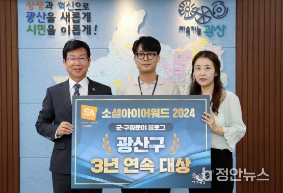 정안뉴스 박상욱 기자 | 광주 광산구는 (사)한국인터넷전문가 협회가 주최하는 ‘2024 소셜아이어워드(i-AWARD)’ 블로그 분야에서 3년 연속 대상을 수상했다고 29일 밝혔다.
