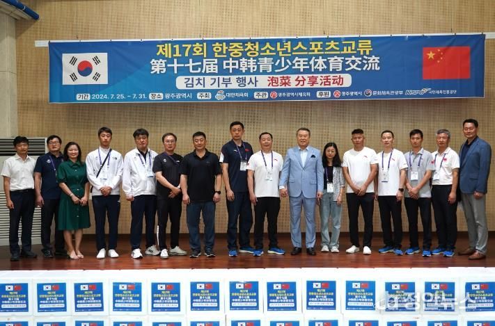 정안뉴스 박상욱 기자 | 제17회 한·중 청소년스포츠 교류대회에 참가하는 중국선수단 80여명과 허샤워붜 단장, 전갑수 체육회장은 광주광역시 김치타운을 방문하여 김치 체험행사에 참여했다.