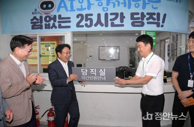정안뉴스 박상욱 기자 | 광주광역시는 1일 인공지능(AI) 시대에 발맞춰 특광역시 중 처음으로 ‘직원 당직제’를 폐지, 뜨거운 안녕을 고했다. 대신 ‘AI 당지기’를 특별채용하고 당직 전담인력을 확보해 24시간 운영하는 재난안전상황실과 통합 운영한다.