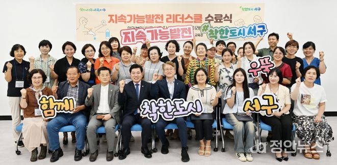 정안뉴스 박상욱 기자 | 광주광역시 서구는 지난달 31일 하이브(HiVE) 서구 교육관에서 ‘지속가능발전 리더스쿨’수료자 34명을 배출했다.