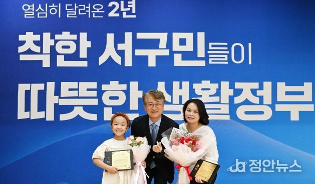 정안뉴스 박상욱 기자 | 8살 어린이, 베트남 출신의 결혼이주여성이 ‘착한도시 서구’ 실현에 기여한 공로를 인정받아 표창을 받았다. 광주광역시 서구는 1일 김수현 어린이(운천초 2학년)와 광주서구가족센터 원가빈씨에게 구정발전 유공 표창을 수여했다.