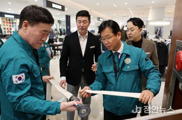 정안뉴스 기자 | 박병규 광산구청장이 16일 시민 삶의 현장을 살피고 소통하는 민생 살핌 동행의 하나로 롯데아울렛 수완점에서 설 명절 대비 다중이용시설 안전 점검을 진행했다.