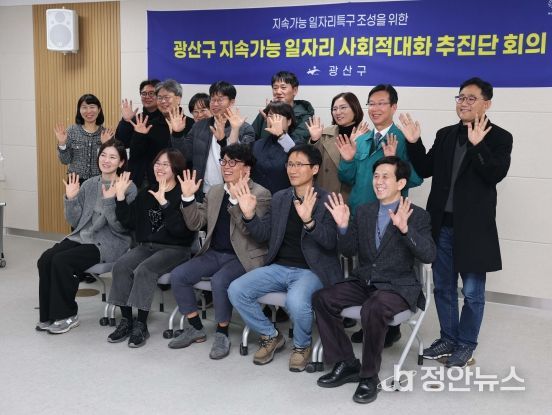 정안뉴스 기자 | 광주 광산구는 23일 구청 3층 회의실에서 ‘지속가능 일자리 사회적 대화 추진단’ 회의를 열어 올해 지속가능 일자리특구 추진 계획을 공유하고, 의견을 수렴했다고 밝혔다.