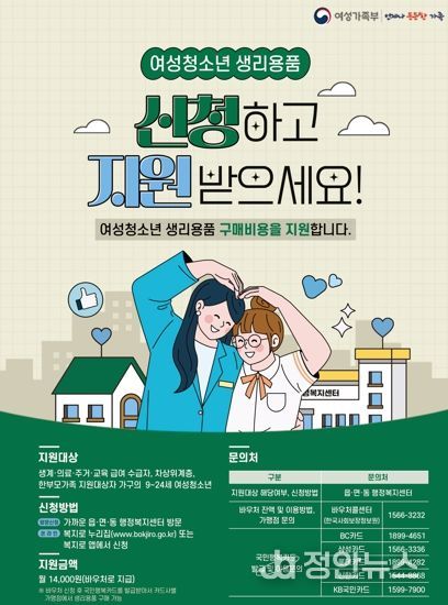 이영동 여성가족국장은 “생리용품 바우처 지원사업은 취약계층 여성청소년들의 건강한 성장을 지원하고 경제적 부담을 덜 수 있는 사업”이라며 “대상자가 정보 부족으로 혜택을 놓치는 일이 없도록 적극 홍보하겠다”고 밝혔다.