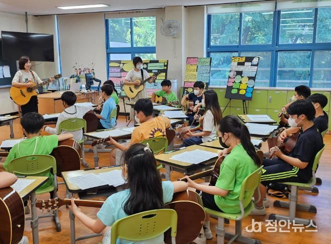 ‘통기타 행복교실’은 2019년 4개교 6학급 97명을 대상으로 시범운영을 시작해 지난해 10개교 28학급 576명이 참여하며 그 규모가 확장하고 있다.