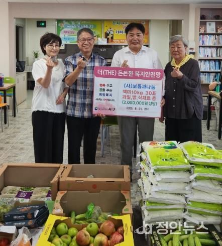 정안뉴스 황정혜 기자 | 사단법인 보듬과 나눔은 지역 취약계층을 돕기 위해 부산 서구청을 통해 아미동 산상교회에 백미(10kg) 30포와 과일, 빵 등 식자재를 기탁했다.