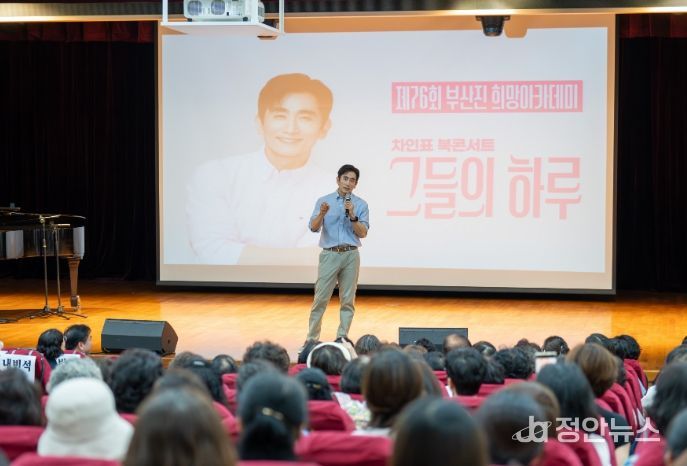 정안뉴스 황정혜 기자 | 부산 부산진구는 9월 3일 오후 2시, 구청 대강당에서 제76회 ‘부산진 희망아카데미’ 차인표 작가 북콘서트 그들의 하루를 성황리에 개최했다고 밝혔다.