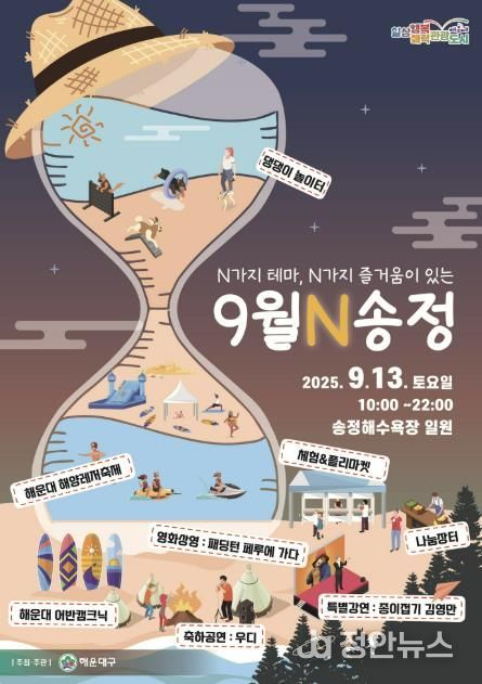 정안뉴스 황정혜 기자 | 해운대구는 5~6일과 13~14일, 송정해수욕장에서 ‘N가지 테마, N가지 즐거움이 있는 9월N송정’을 개최한다.