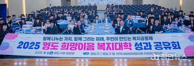 정안뉴스 황정혜 기자 | 부산시 영도구와 영도구 동 지역사회보장협의체 위원장협의회(협의회장 이정숙)는 지난 9월 3일 영도구청 대강당에서‘2025 영도 희망이음 복지대학 성과공유회’를 개최했다.