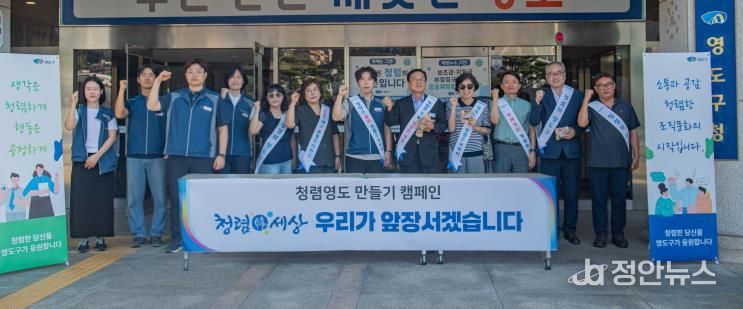 정안뉴스 황정혜 기자 | 부산시 영도구는 지난 9월 5일 김기재 영도구청장을 비롯한 4급 이상 고위공직자와 전국공무원노동조합 영도구지부가 참여한 가운데 출근길 청렴캠페인을 개최했다.