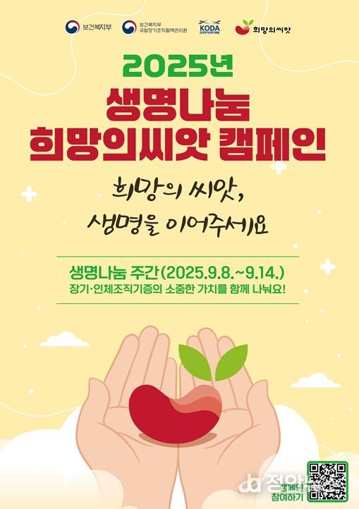 정안뉴스 황정혜 기자 | 부산시는 제8회 생명나눔 주간(9.8.~9.14.)을 맞아 '생명나눔 희망의씨앗 캠페인'을 실시한다고 밝혔다.