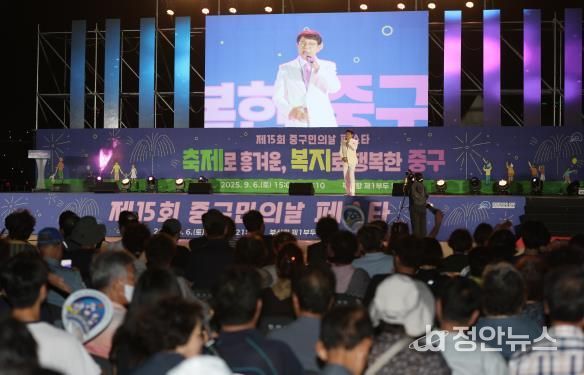저녁 7시에 개최된 기념행사에는 자랑스러운 구민상·중구 토박이증서·사회복지 유공 표창 수여 등 의식행사가 진행됐으며, 설운도·자두·백수정·세레나데의 축하공연이 이어졌다.
