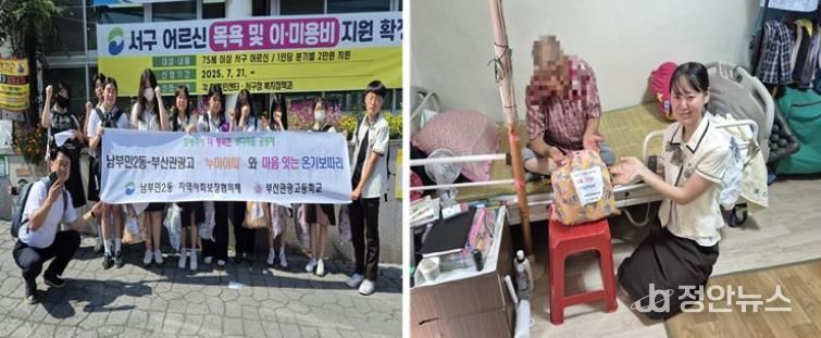 정안뉴스 황정혜 기자 | 부산 서구 남부민2동 지역사회보장협의체는 지난 5일 부산관광고등학교 학생 봉사 동아리 '누미아띠'와 함께 홀로 어르신 안부 확인을 위한 “누미아띠와 마음 잇는 온기 보따리 지원” 사업을 운영했다.