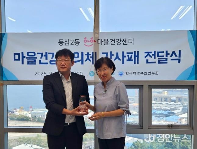 정안뉴스 황정혜 기자 | 영도구보건소는 지난 9월 8일 지역주민의 건강증진 환경 조성을 위해 헌신적인 노력을 기울여 온 한국해양수산연수원에 감사패를 전달했다.