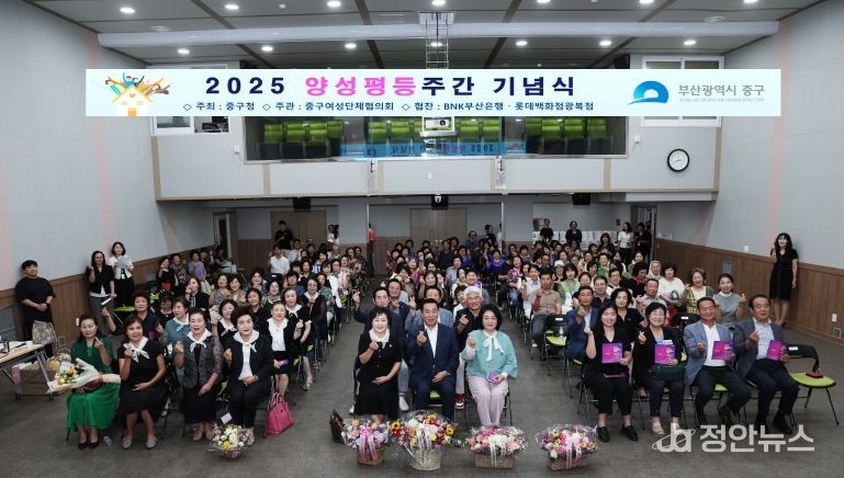 정안뉴스 황정혜 기자 | 부산 중구는 『양성평등주간』을 맞이하여 사회 모든 영역에서 실질적 양성평등의 실현을 촉진하고 구민의 관심을 증진하기 위한 양성평등 주간 기념행사를 개최했다.