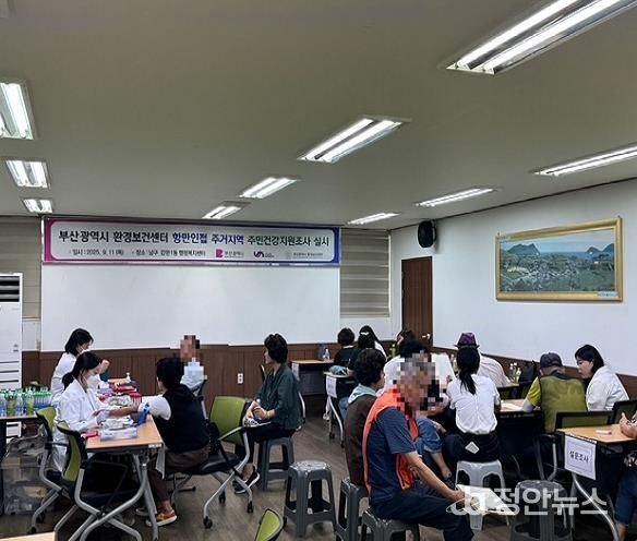 정안뉴스 황정혜 기자 | 부산 남구는 지난 9월 11일 감만1동 행정복지센터에서 부산광역시 및 부산광역시 환경보건센터(동아대학교)와 함께 '2025년 환경보건 취약가능지역 주민건강지원조사'를 실시했다.