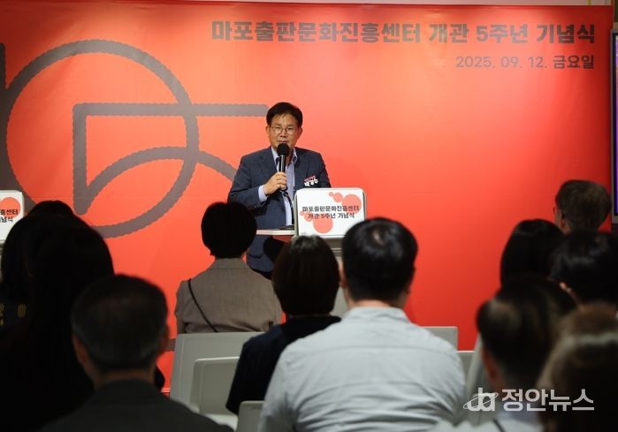 정안뉴스 안정주 기자 | 서울시 마포구는 9월 12일 오후 2시, 마포출판문화진흥센터(신촌로2길 19) 2층 북&라운지에서 개관 5주년을 맞아 기념식을 열었다.