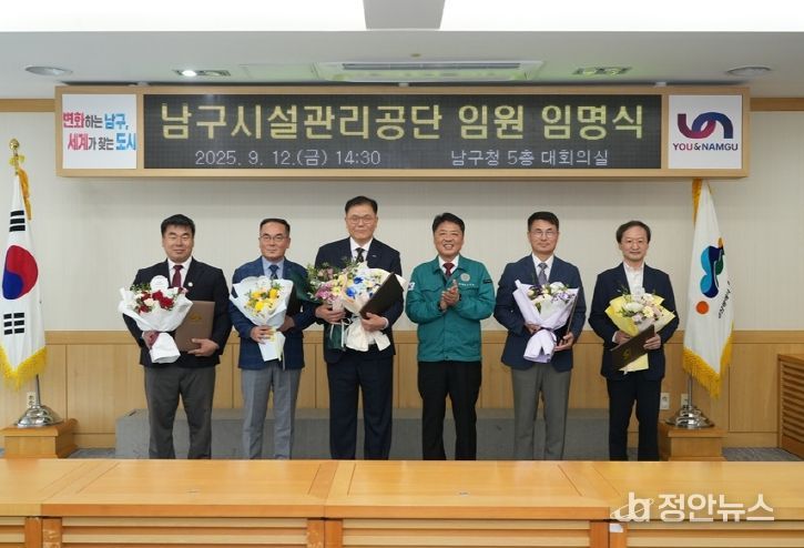정안뉴스 황정혜 기자 | 부산 남구는 지난 12일, 남구시설관리공단을 이끌어갈 제2대 임원진으로 이무진 이사장을, 비상임이사로는 김웅호, 성수용, 오경모, 조영갑 이사를 임명했다.