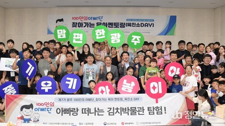한편 ‘광주 100인의 아빠단’은 보건복지부와 지자체가 함께 운영하는 아빠 모임으로, 3~9세 자녀를 둔 아빠들이 참여해 육아 경험을 나누고 다양한 체험 프로그램에 함께 한다. 올해 제7기 아빠단은 123명으로 구성돼 양육 친화적 분위기 조성에 앞장서고 있다.