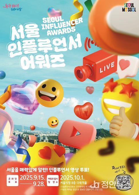 정안뉴스 안정주 기자 | 서울시는 서울의 매력과 정책을 잘 알린 인플루언서를 선정하는 ‘서울 인플루언서 어워즈’ 온라인 시민투표를 9월 15일부터 9월 28일까지 2주간 진행한다.