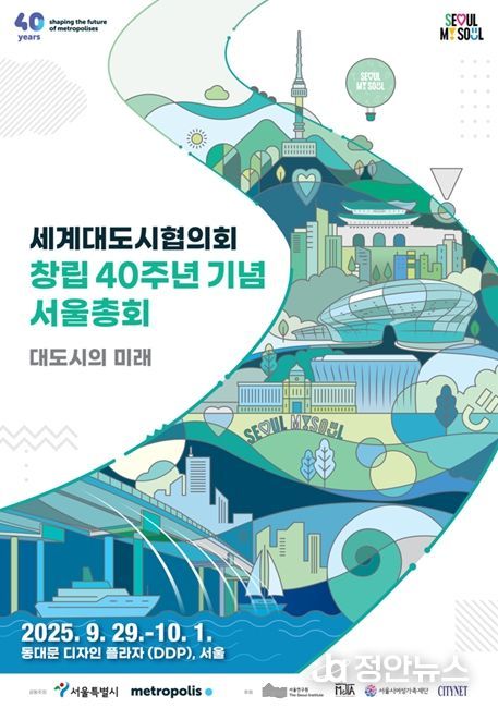 정안뉴스 안정주 기자 | 국내외 70여 개 대도시 시장단과 국제기구 등 30여 개 기관의 300여 명이 케데헌이 쏘아올린 도시, 서울에 모인다. 세계 대도시의 경제발전과 삶의 질 향상 및 미래 비전을 공유하는 「2025 세계대도시협의회 창립 40주년 기념 서울 총회」가 공동의장도시 서울에서 개최된다.