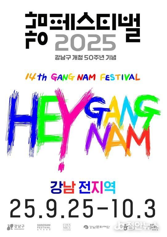 정안뉴스 안정주 기자 | 꿈이 모이는 도시, 미래를 그리는 강남구가 개청 50주년을 맞아 오는 9월 25일부터 10월 3일까지 코엑스, 영동대로, 마루공원 등 강남 전역에서 ‘2025 강남페스티벌 HEY! 강남’을 개최한다. 올해로 14회를 맞는 이번 축제는 음악, 패션, 미식, 스포츠가 어우러진 K-컬처의 향연으로, 대한민국을 넘어 세계와 소통하는 글로벌 도시축제가 될 전망이다.