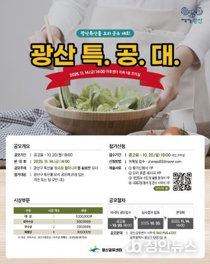 정안뉴스 안정주 기자 | 광주 광산구가 광산구의 농가 특산물을 활용한 요리 공유 대회 ‘2025 광산 특.공.대’를 개최한다.