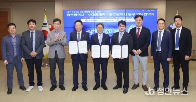 정안뉴스 안정주 기자 | 광주 동구는 15일 광주광역시, ㈜대웅제약(대표이사 이창재)과 ‘인공지능(AI) 헬스케어 실증밸리’ 조성을 위한 업무협약을 체결했다고 밝혔다.