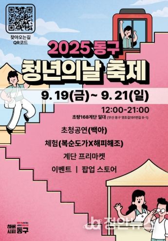 정안뉴스 황정혜 기자 | 부산광역시 동구는 청년들의 창의와 열정을 응원하고 지역사회와의 소통을 강화하기 위해 오는 9월 19일부터 21일까지 2025년 ‘동구 청년의 날 축제’를 개최한다고 밝혔다.