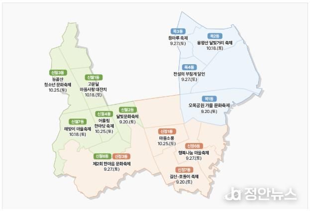 정안뉴스 안정주 기자 | 양천구는 축제의 계절 가을을 맞아 9월부터 10월까지 14개 동에서 지역 특색을 담아 준비한 ‘우리동네 마을축제’를 개최한다고 밝혔다.