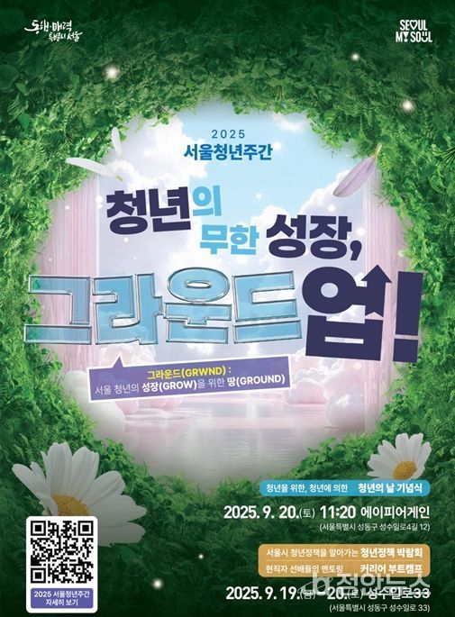 정안뉴스 안정주 기자 | 서울시가 청년의 날을 맞아 9월 19일부터 9월 30일까지 서울청년주간 행사를 개최한다. 성수동을 중심으로 서울 곳곳에서 청년의 성장과 도약을 주제로 한 다양한 행사가 가득 열릴 예정이다.