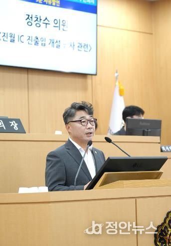 정안뉴스 안정주 기자 | 남구의회 정창수 의원은 16일 제314회 임시회 2차 본회의에서 5분 자유발언을 통해 진월IC 진출입로 개설공사와 관련된 문제점을 점검하고 개선방안을 제시했다.