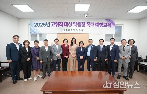 정안뉴스 안정주 기자 | 남구의회는 16일, 의회 소회의실에서 전체 의원 및 의회사무국장을 대상으로 ‘2025년 고위직 대상 맞춤형 폭력예방 교육’을 실시했다고 밝혔다.
