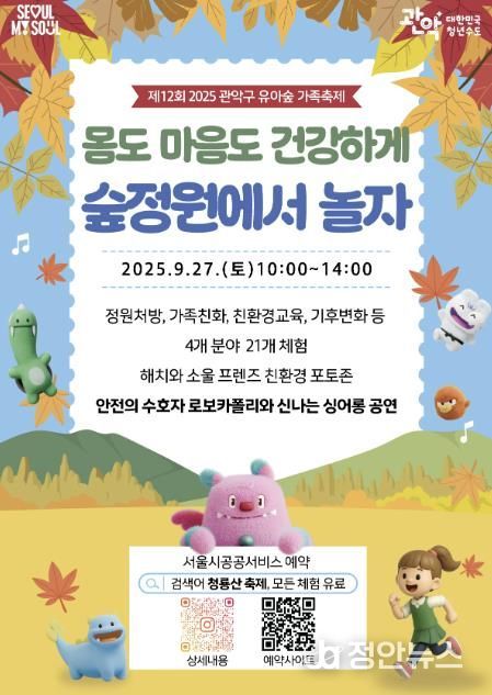 정안뉴스 안정주 기자 | 관악구가 오는 27일 오전 10시부터 오후 2시까지 청룡산 유아숲체험원에서 ‘2025년 제12회 유아숲 가족 축제’를 개최한다.