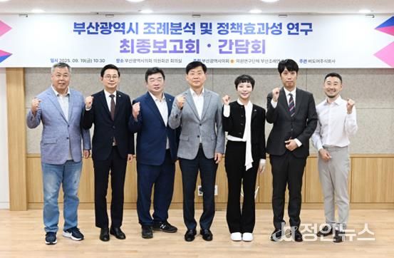 정안뉴스 안정주 기자 | 부산시의회 의원연구단체 '부산조례연구회'가 9월 19일 오전 10시 30분 부산시의회 의원회관 회의실에서 『부산광역시 조례분석 및 정책 효과성 연구』 최종보고회를 개최했다.