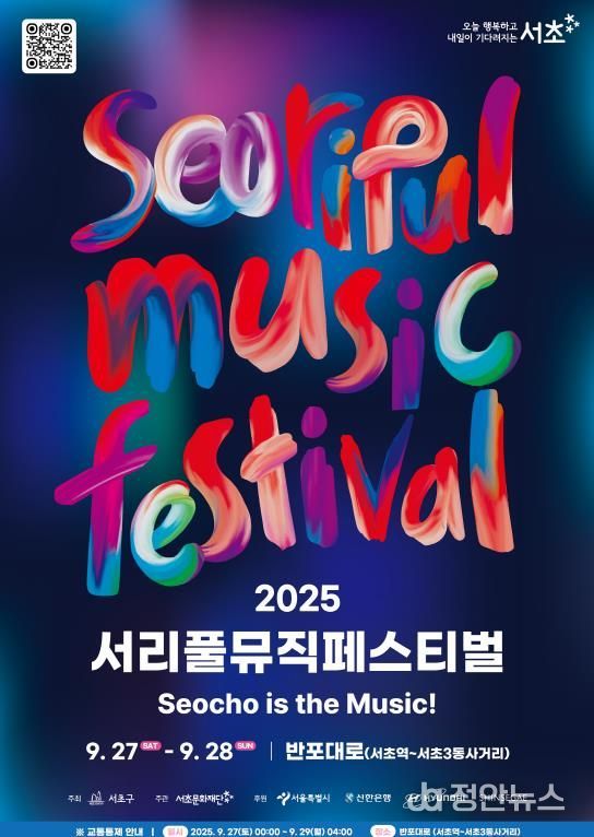 정안뉴스 안정주 기자 | 서울 서초구의 대표 축제 ‘2025 서리풀뮤직페스티벌’이 10주년을 맞아 한층 새로워진 모습으로 돌아온다. 오는 9월 27일~28일, 왕복 10차선 반포대로 900m 구간(서초역~서초3동 사거리)이 차 없는 거대한 무대로 변신하고 세계적 아티스트부터 지역 주민까지 모두가 함께 만드는 음악 축제가 펼쳐진다.