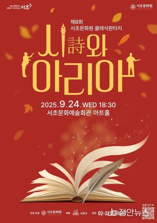 정안뉴스 안정주 기자 | 서울 서초구는 오는 9월 24일 오후 6시 30분, 서초문화예술회관 1층 아트홀에서 '제8회 클래식 판타지: 시詩와 아리아'를 개최한다고 밝혔다.