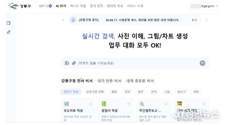 ‘생성형 AI 업무 지원 서비스’는 강동구가 최신 생성형 인공지능(AI) 모델인 GPT-5을 기반으로 다양한 실무에 적용할 수 있도록 구축한 통합 플랫폼이다.