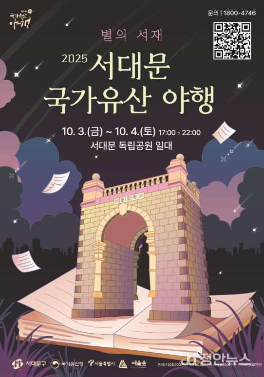 정안뉴스 안정주 기자 | 서대문구가 다음 달 3∼4일 오후 5시부터 밤 10시까지 서대문독립공원 일대에서 ‘별의 서재’란 주제로 ‘2025 서대문 국가유산 야행’을 개최한다.