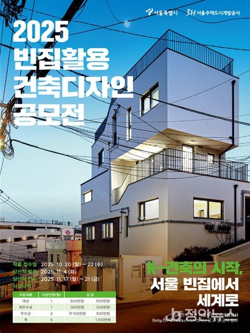 시는 서울주택도시개발공사(SH)와 함께 정비사업으로 매입한 빈집을 청년·신혼부부 등을 위한 임대주택 또는 마을주차장, 생활정원 같은 생활기반시설로 공급하고 있다. 이번 공모전은 ‘K-건축의 시작, 서울 빈집에서 세계로’라는 슬로건으로 다양한 빈집 활용 방안을 모색하고, 신진건축가들이 역량을 한층 넓게 발휘할 수 있도록 마련했다.