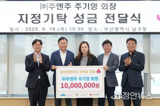 정안뉴스 황정혜 기자 | 지난 18일 부산 아너소사이어티 회원인 ㈜주엔주 주기영 회장은 모교인 부산 남구 문현초등학교의 가정형편이 어려운 학생 20명에게 성금 총 1,000만 원을 전달했다.